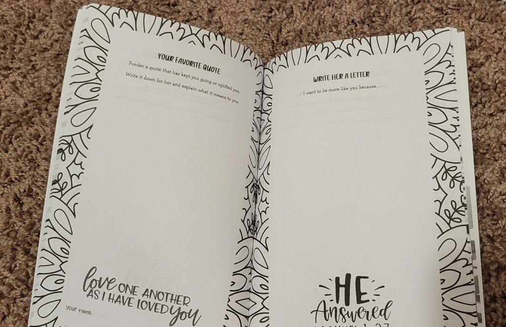 Moving into each book specifically, I found that they were each designed to fit a different group of people–there’s a journal for young girls and women, a journal for boys and men, and a journal specifically for Christians, with bible verses. Each of these books had wonderful prompts and ideas on each page, along with simple yet beautiful designs. This is a well thought out idea for less than ten dollars a book, perfect for a birthday, holiday, or just-because gift, that any recipient would love to get. This is much more meaningful than a quick text, and would be effective at being close-by whenever you’re home and need a little reminder that you’re loved–just flip through the pages and read what your loved ones have written about you!